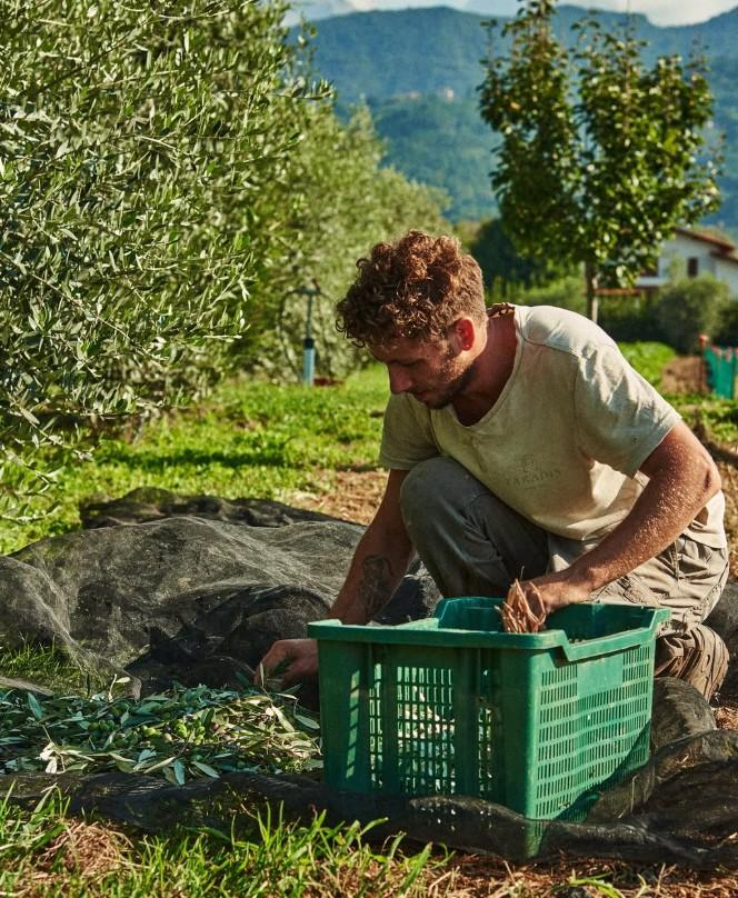 Between rows of olive trees and green crates slowly filling up, we relive the same joy every year: watching our new oil come to life, pressed from our Leccio, Moraiolo, Frantoiano, and Pendolino varieties.